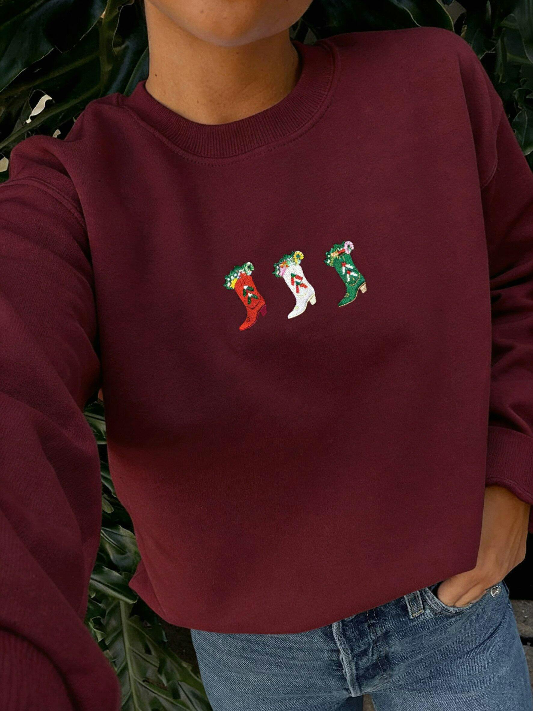 Western Cowgirl Christmas Stocking Embroidered Sweatshirt